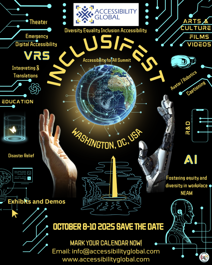 Accessibility Global would like to remind you that every October is Disability Awareness Month.  Next year, we will be hosting the Inclusifest conference on October 8-11, 2025.